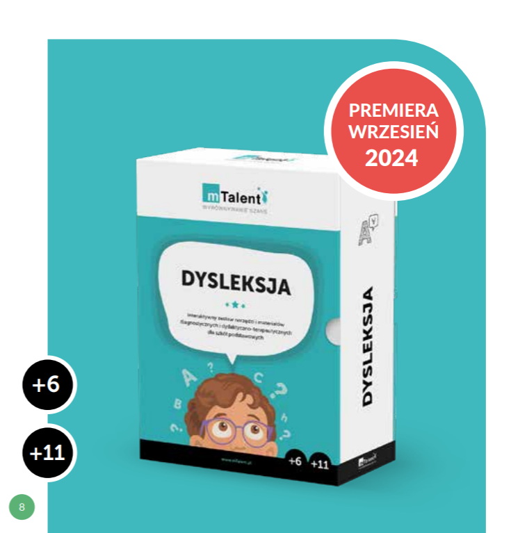 Do czego służy? Do wykorzystania w szkole w procesie diagnostycznym i edukacyjno-terapeutycznym w pracy z uczniem (zarówno młodszym, jak i starszym) z dysleksją, dysortografią i dysgrafią. Z czego się składa? Z ponad 1000 ekranów interaktywnych, zestawu kart pracy do wydruku, przewodnika metodycznego, pomocnika diagnostycznego, kompleksowego planu udzielania pomocy psychologiczno-pedagogicznej w szkole, wskazówek dla rodziców oraz zestawu materiałów dodatkowych. Program składa się z modułu diagnostycznego, dydaktycznego i terapeutycznego. Dla kogo? Program dla terapeutów pedagogicznych, pedagogów specjalnych, logopedów i nauczycieli pracujących z dziećmi w obszarze szeroko pojętego zagadnienia dysleksji.