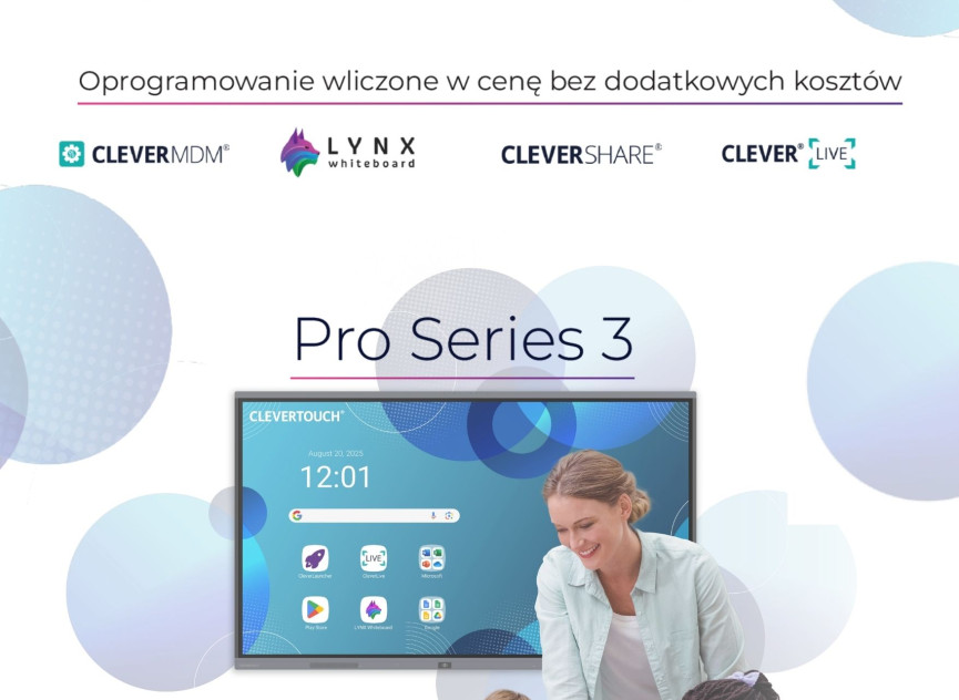 Wybierając monitor interaktywny Clevertouch Pro Series 3, szkoła otrzymuje nie tylko zaawansowane urządzenie, ale również kompletny pakiet oprogramowania edukacyjnego w cenie. W skład zestawu wchodzą: