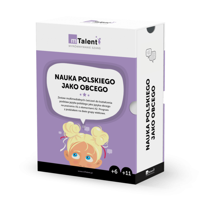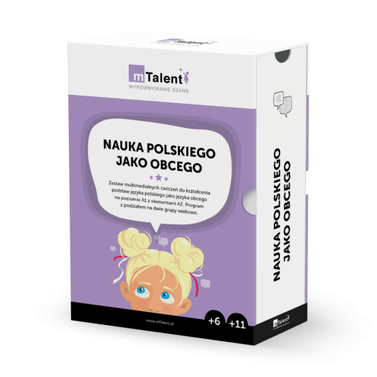 mTalent Nauka polskiego jako obcego to: multimedialny zestaw uzupełniający regularny podręcznik kursowy, który pomoże indywidualizować pracę odpowiednio do możliwości uczniów. Jest to narzędzie do wykorzystania przez nauczycieli i uczniów podczas kursu i zajęć, w tym także materiały samodzielnej pracy w domu (np. karty pracy).