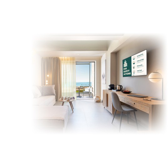 Wyświetlacz oferuje wysoką jasność 500 cd/m², pracę w trybie 24/7 oraz bezprzewodowe udostępnianie obrazu z wielu urządzeń jednocześnie. To kompleksowe rozwiązanie dla firm, które szukają nowoczesnego, niezawodnego i ekonomicznego systemu do komunikacji wizualnej i współpracy.