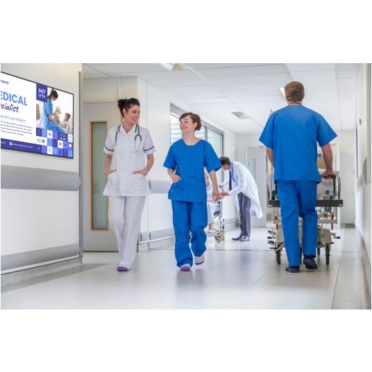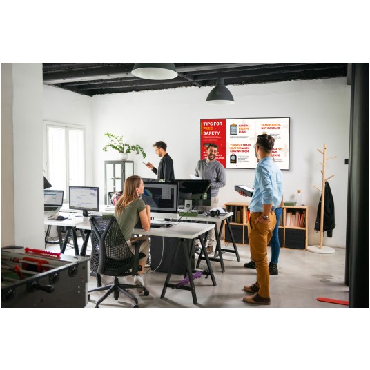 Monitor został zaprojektowany z myślą o pracy w trybie ciągłym, dzięki czemu doskonale sprawdza się w środowiskach komercyjnych. Może być wykorzystywany w sklepach, hotelach, biurach, szkołach oraz innych przestrzeniach, gdzie wymagane jest niezawodne działanie przez cały dzień.