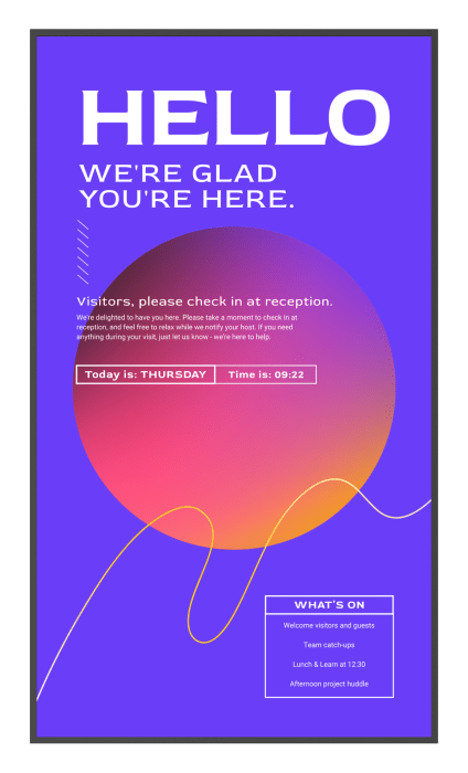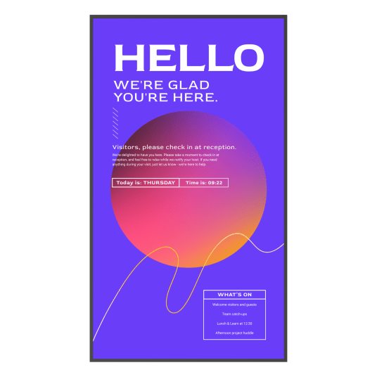 Po zakończeniu spotkania urządzenie automatycznie wraca do trybu digital signage, umożliwiając ciągłą komunikację wizualną w firmie. Dzięki temu jeden ekran może obsługiwać wiele funkcji bez potrzeby przełączania urządzeń.